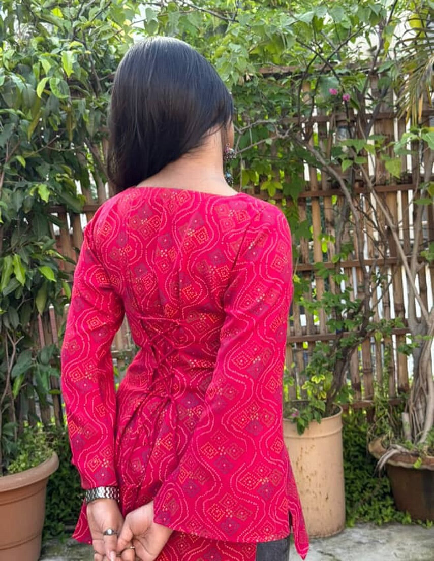 Maroon Geometric Peplum Kurti