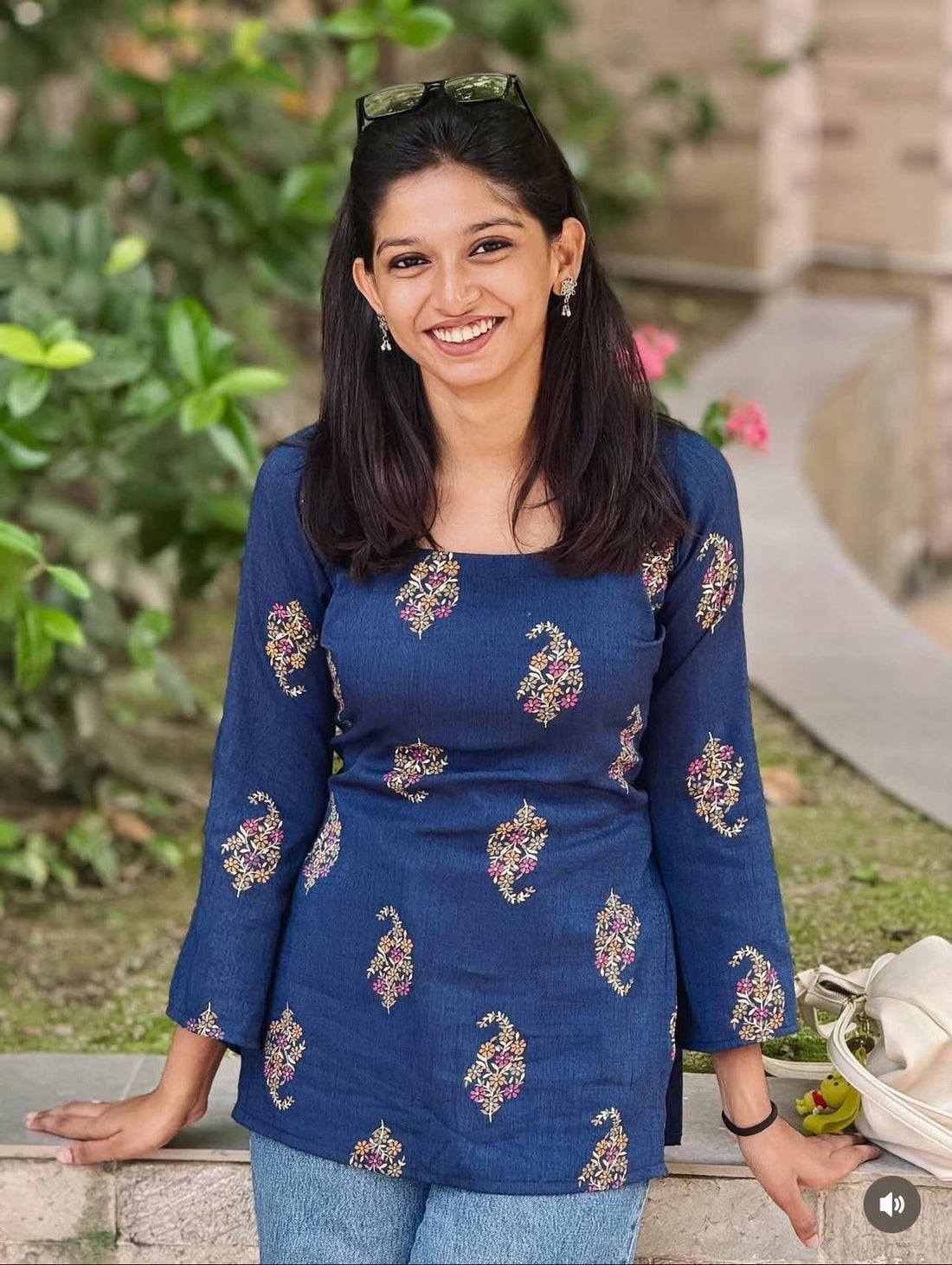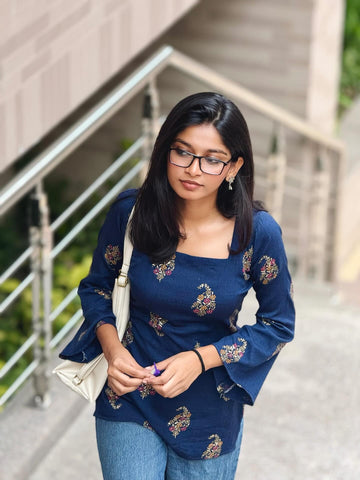 Navy Blue Paisley Short Kurti